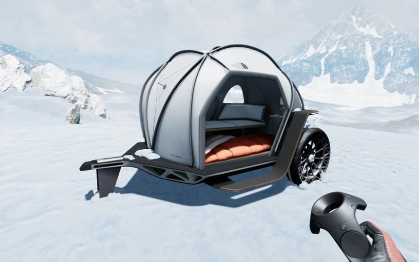 FUTURELIGHT karavan, kubbeli bir gözyaşı karavan görünümünde ve çekme karavan olarak tasarlanmış.The North Face, spor giyimin yanı sıra açık hava sporları için donanım malzemeleri satıyor ve karavan da ilk olarak onun ürünü olarak piyasaya sürülecek.