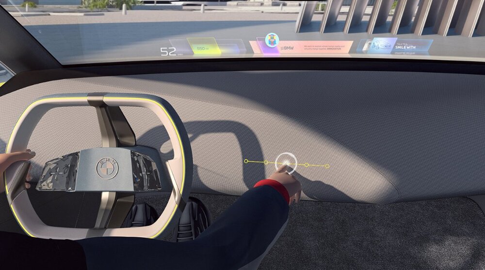 Otomobilin en ilginç özelliklerinde biri ise dokunmaya duyarlı sensörlerden oluşan bir sistem olarak tarif edebileceğimiz “BMW Mixed Reality Slide”. Bu sistem sayesinde sürücü, sürüş deneyiminin ne kadar dijital olmasını istediğine kendisi karar verebiliyor. Bu sensörlerin dışında herhangi bir fiziksel tuş ya da kontrol paneli bulunmuyor. Analogdan sürüşle ilgili bilgilere, sosyal medya içeriklerine, artırılmış projeksiyona ve son olarak tamamen sanal bir dünyaya girişe kadar uzanan beş aşamalı bir skala sunulmuş.