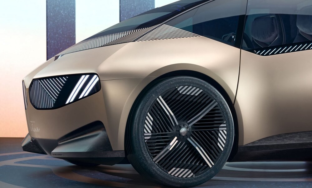 Her ne kadar sade tasarım ve rahatlatıcı renkleriyle öne çıkıyor olsa da elektrikli otomobilin BMW’nin tasarımsal izlerini taşıdığını söylemek mümkün. 3B baskılı direksiyon simidinin ortasında ve aracın dışında gövdeye lazerle kazınmış BMW logosu dışında herhangi bir yerde logo görünmüyor. Otomobilin gövdesi geri dönüştürülmüş alüminyum ve çelik karışımından oluşuyor. BMW’nin sembolü haline gelen ızgara şerit LED ışıklandırmalarla dijital bir yüzeye dönüşüyor ve geleceğe göz kırpıyor. “Sürdürülebilir şekilde yetiştirilmiş” doğal kauçuktan üretilen lastiklerle aracın dış tasarımı fütüristik yansımalar sunuyor.