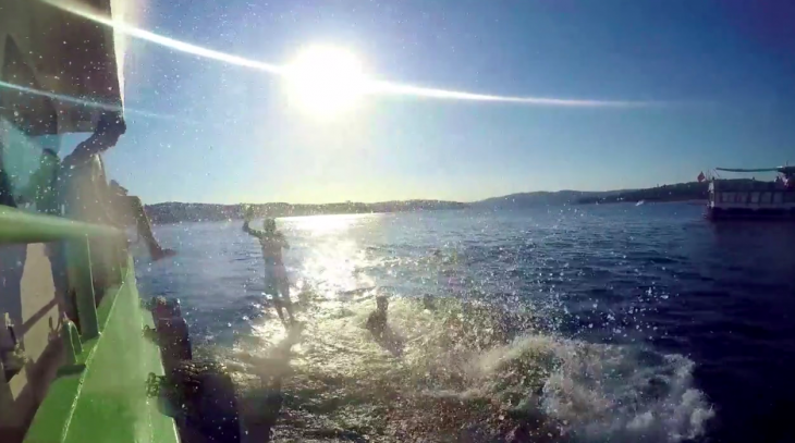 Motordaki hiçbir şeyden habersiz altı kişi şaşkın gözlerle olup biteni anlamaya çalışırken, güverteyi boşaltmaları istenilen diğer yolcular, patır patır suya atlamaya ve suyun keyfini çıkarmaya başlıyor.