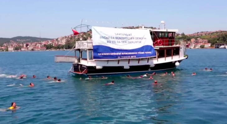 Bu yıl 27.’si düzenlenen Samsung Boğaziçi Kıtalararası Yüzme Yarışı’nın tanıtımı için hazırlanan filmde, Kabataş’tan Beykoz istikametine giden motorun kaptanı Boğaz’ın ortasında aniden duruyor ve yolculara beklenmedik bir anons yapıyor: “Dikkat dikkat, bulunduğumuz nokta teknemizin son durak noktasıdır. Boğaz’ın bundan sonraki bölümünü kulaçlarla geçeceğiz.”