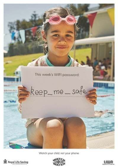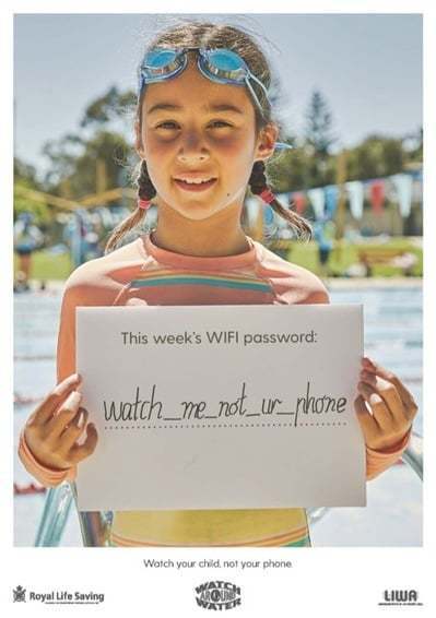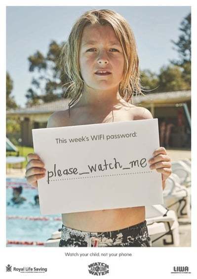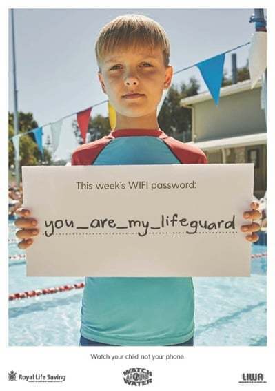 Son yıllarda havuzlarda sağlanan ücretsiz wifi hizmetinin de etkisiyle anne-babaların akıllı telefonlarıyla giderek daha çok meşgul olmalarının havuzdaki çocuklarını yeteri kadar izlememelerine sebep olduğu ortaya çıkmış. Buna bağlı olarak doğabilecek boğulma risklerini azaltmak ve anne-babalara çocuklarını gözlemlemeyi unutmamaları hatırlatmak amacıyla Avustralya’da boğulmaları azaltmak için çalışan Royal Life Saving Society ve reklam ajansı 303 MullenLowe, wifi ağlarının şifresi üzerinden basit ama etkili bir farkındalık kampanyası yaratmış.