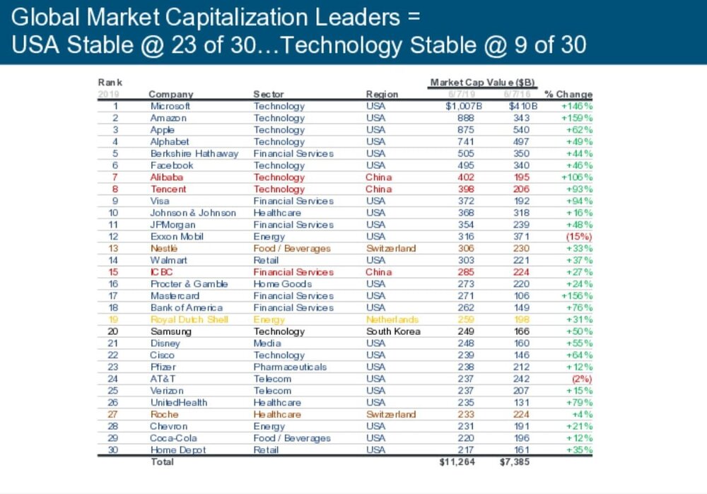 Dünyanın en değerli markası Microsoft olurken ilk 10’da yedi teknoloji şirketi bulunuyor. Microsoft’un büyümesi 2019 yılının ilk çeyreğinde yavaşlamasına rağmen hala lider konumda bulunuyor. E-ticaret ise büyümeye devam ediyor. İnternet üzerinden yapılan alışverişler perakende satışların yüzde 15’ini kapsıyor.