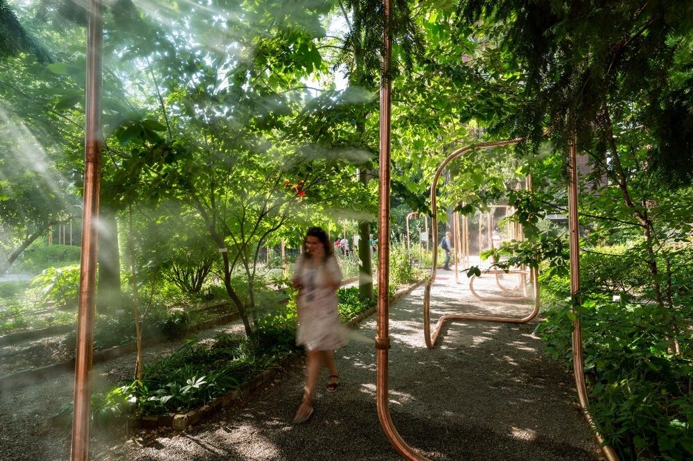 Feeling The Energy eserini ziyaret edenler, özenle korunan medikal bitkilerin bulunduğu bu botanik bahçesinde dolaşırken güneş ve rüzgar enerjisinin yanında evoporatif soğutma üniteleri aracılığıyla enerjinin farklı formlarını duyusal olarak deneyimleme şansı bulabiliyorlar. Kurulumu KME tarafından üretilen, yeniden kullanılabilir özellikteki toplam 500 metre uzunluğunda antibakteriyel bakır borularla gerçekleştirilen Feeling The Energy, normal bir botanik bahçesini interaktif bir “enerji parkı”na dönüştürme misyonunun yanı sıra, tasarım diliyle de şimdiden Milano Tasarım Haftası 2022’nin dikkat çeken işleri arasında yerini alıyor.