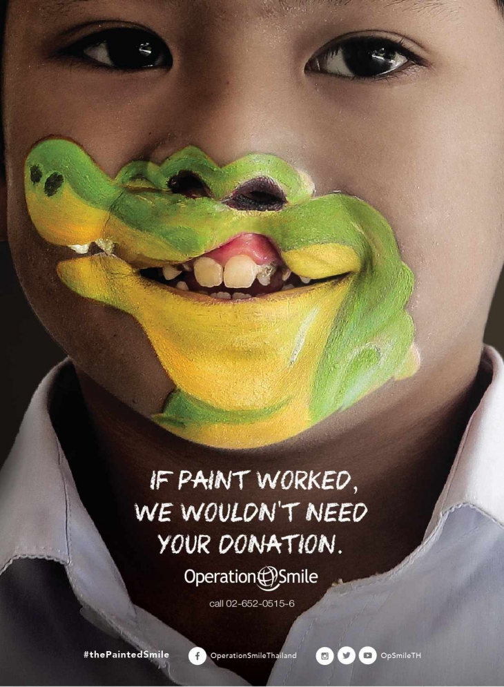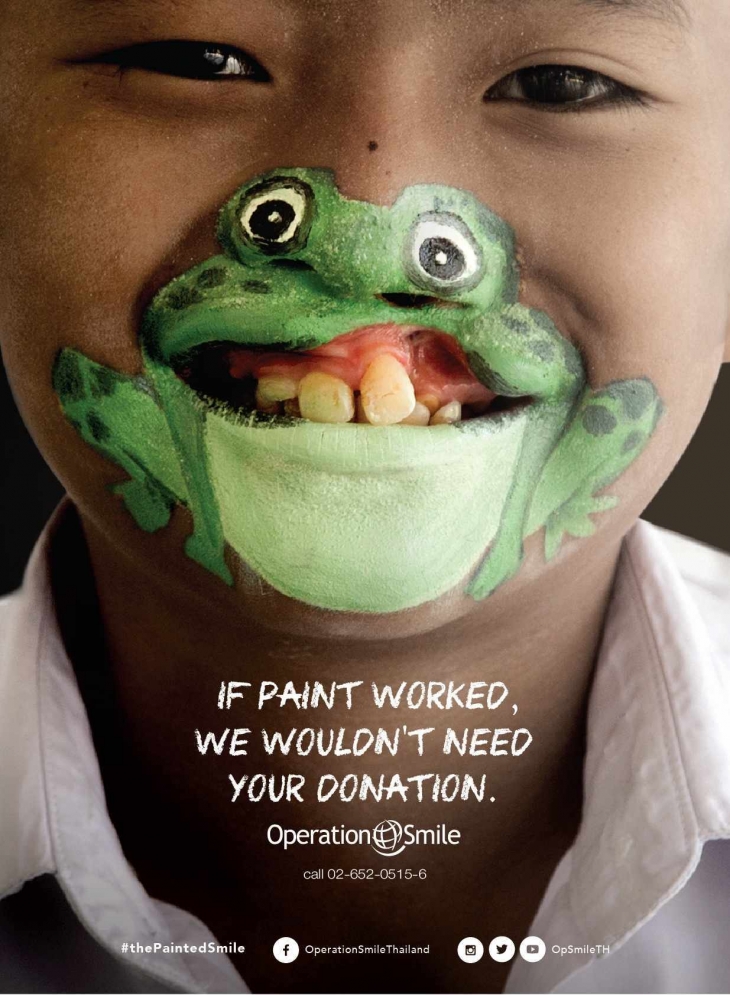 BBDO Proximity Tayland imzalı kampanyada, profesyonel makyözlerle çalışılmış ve yarık dudak rahatsızlığı olan çocukların dudak çevrelerine eğlenceli, renkli resimler yapılmış. Bu sayede kurbağa, timsah, prensese dönüştüklerini hisseden çocuklar belki de ilk defa dilediğince, saklanmadan gülmüşler. Hatta arkadaşlarına mini bir tiyatro gösterisi bile yapmışlar.
