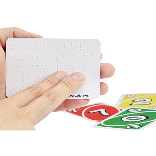 ABD Ulusal Körler Federasyonu ile iş birliği içinde tasarlanan UNO Braille kartları; köşelerindeki dokunsal yazı sistemiyle rengine, sayısına ve hareketine dair açıklama içeriyor. Ayrıca oyuncular artık Amazon Alexa ve Google Home üzerinden seslendirilmiş talimatlara erişebiliyorlar.