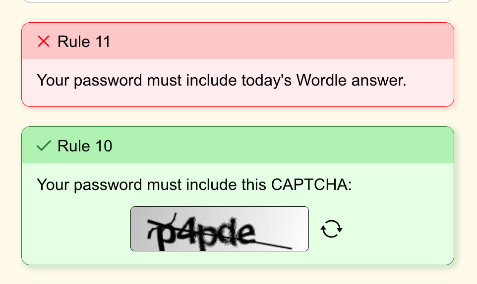 Örneğin şifrenizin içinde rakamlar mı var? Varsa mesela bu rakamların toplamı 25 olmalı. Sitenin reklamverenlerinden birinden bahsetmeli. Periyodik tablodan bir element içermeli. Rule 1,2,3 … şeklinde devam eden oyunun her adımında şifrede mükemmel kombinasyonu oluşturabilmek adına çeşitli görevleri tamamlamanız gerekiyor. Bu bazen bir matematik problemi, bazen bir satranç hamlesi, bazen de bir diğer viral oyun Wordle’ın bugünkü yanıtı olabiliyor.