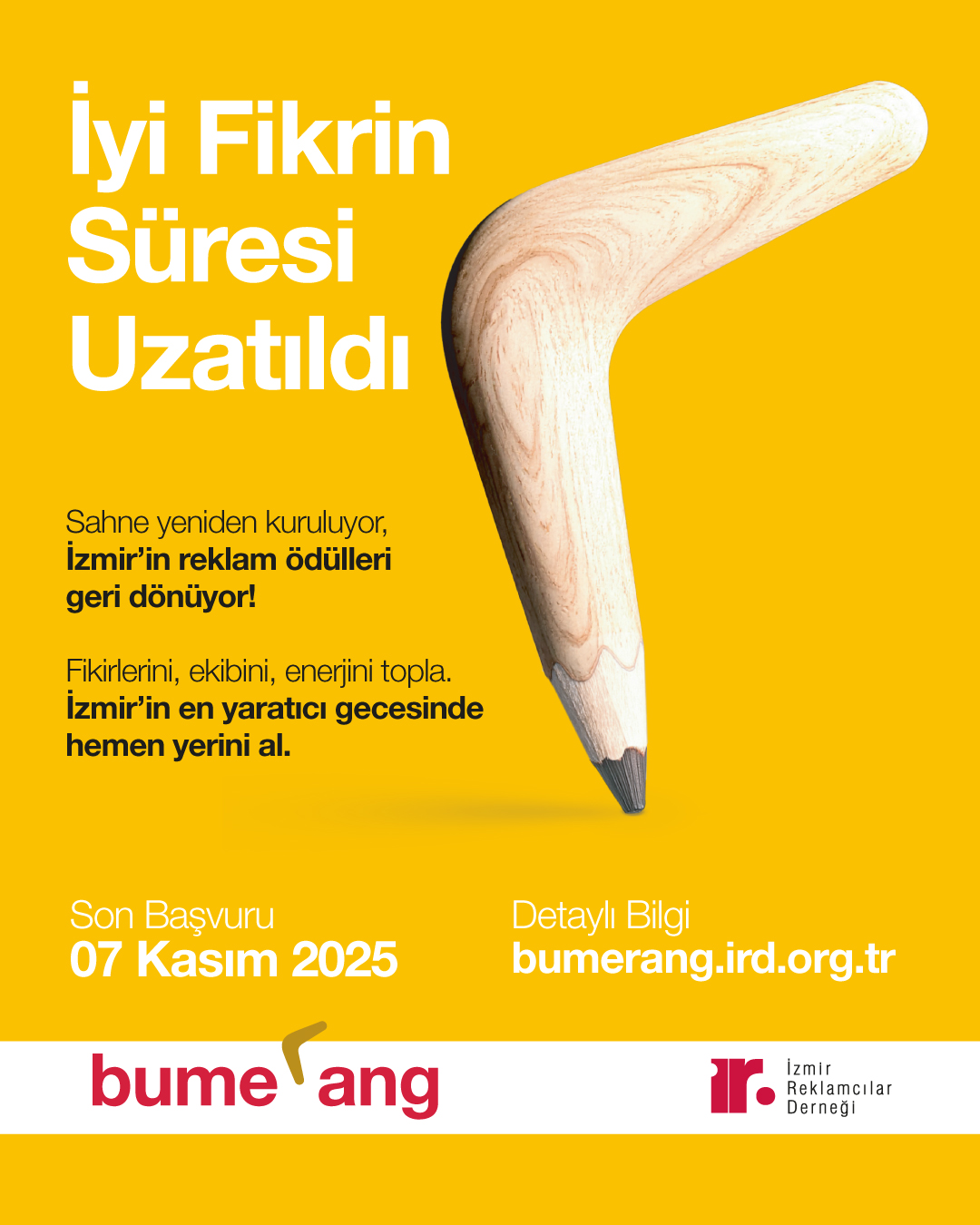 İzmir Reklamcılar Derneği (İRD), kentin ve Ege Bölgesi’nin yaratıcı endüstrilerini destekleyen Bumerang Reklam Ödülleri’ni uzun bir aradan sonra yeniden başlatıyor. Türkiye’nin ilk bölgesel reklam yarışması olarak 1997 yılında hayata geçen Bumerang, yıllar içinde büyüyen bir katılımla sektörde önemli bir yere sahip olmuştu. 2009’daki dördüncü etkinliğin ardından verilen uzun ara, bu yıl sona eriyor. Yarışmanın bu yılki teması ise özünü net biçimde yansıtıyor: “İyi fikir ödülle döner.”