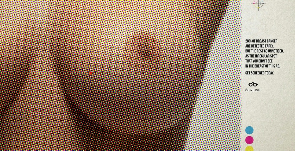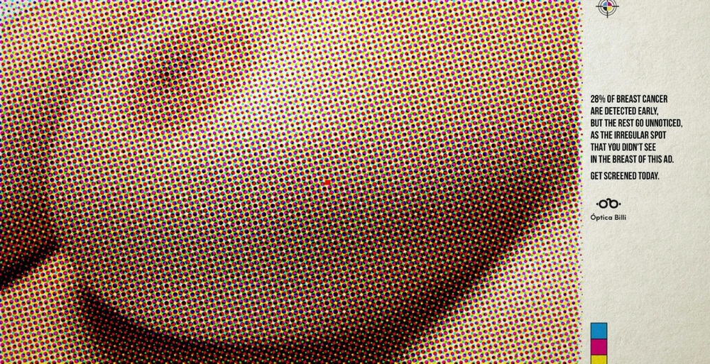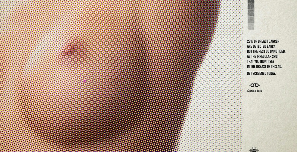 Venezuela merkezli Óptica Billi isimli gözlük mağazası zinciri de erken teşhisin önemine meme görsellerinin düzensiz ve net olmayan bir formda verildiği afişleri ile dikkat çekiyor. Erken teşhisin önemli olduğu bu süreçte potansiyel hastaları belirtileri kaçırmaması için uyarıyor. Unnoticed Breasts isimli kampanyada her afişte yer alan ve ilk bakışta fark edilemeyen o belirsiz noktalar meme kanserinin belirtilerinin gözden kaçabileceğine işaret ediyor.