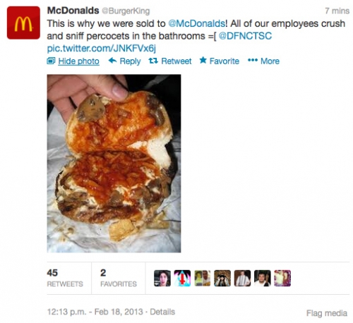 Burger King’in Twitter hesabı ele geçirildi ve ele geçirenler markanın en büyük rakibi olan McDonals’ın logosunu ve ismini kullanıyor hesapta şu an. İşin garibi hesap markanın resmi hesabı, yani bu yalnızca bir Burger King sosyal medya yönetimi olayı değil aynı zamanda Twitter olayı.