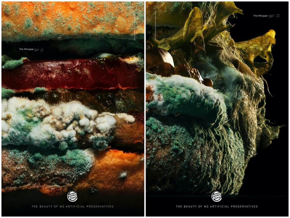 30 saniye boyunca bir Whopper’ın yavaş yavaş küflenmeye başladığını gösteren kampanyanın ardında INGO Stockholm, David Miami ve Publicis imzası bulunuyor. Reklam filmindeki Whopper 34 gün boyunca yavaş yavaş küfleniyor. Bir başka değişle çözünme sürecine giriyor. Kampanya fast food endüstrisinin bilinçli tüketicileri hedefine alarak daha doğal ürünleri geçme eğiliminde olduğunun bir göstergesi.