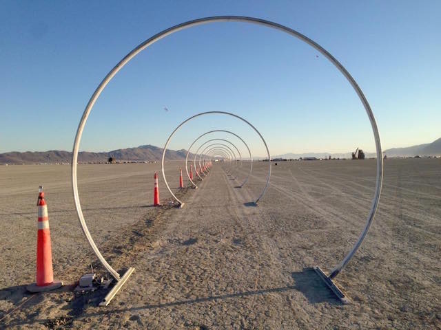 Sonic Runway isimli kinetik yerleştirme de sesin akışından besleniyor ve katılımcılara ses hızını dinamik renklerle görselleştiriyor. 2003’te bir dizi piramitle benzer deneyimi yaratan ekip bu kez çember kullanarak tam anlamıyla bir tünel hissi yaratmış. Indiegogo’da fonladıkları kampanyayla hayata geçirilen projeyle inşa edilen 32 çemberden her birinin maliyeti de 500 dolar olarak belirlenmiş.