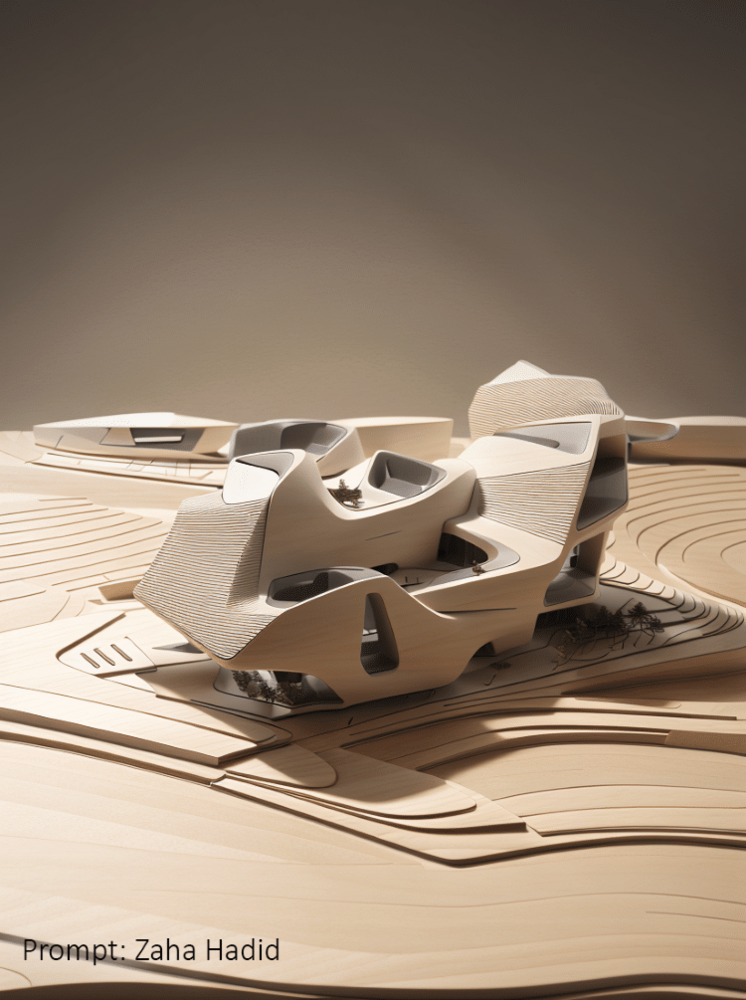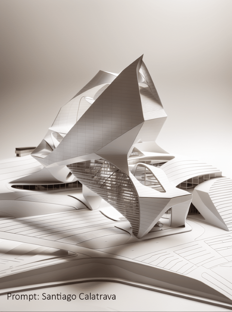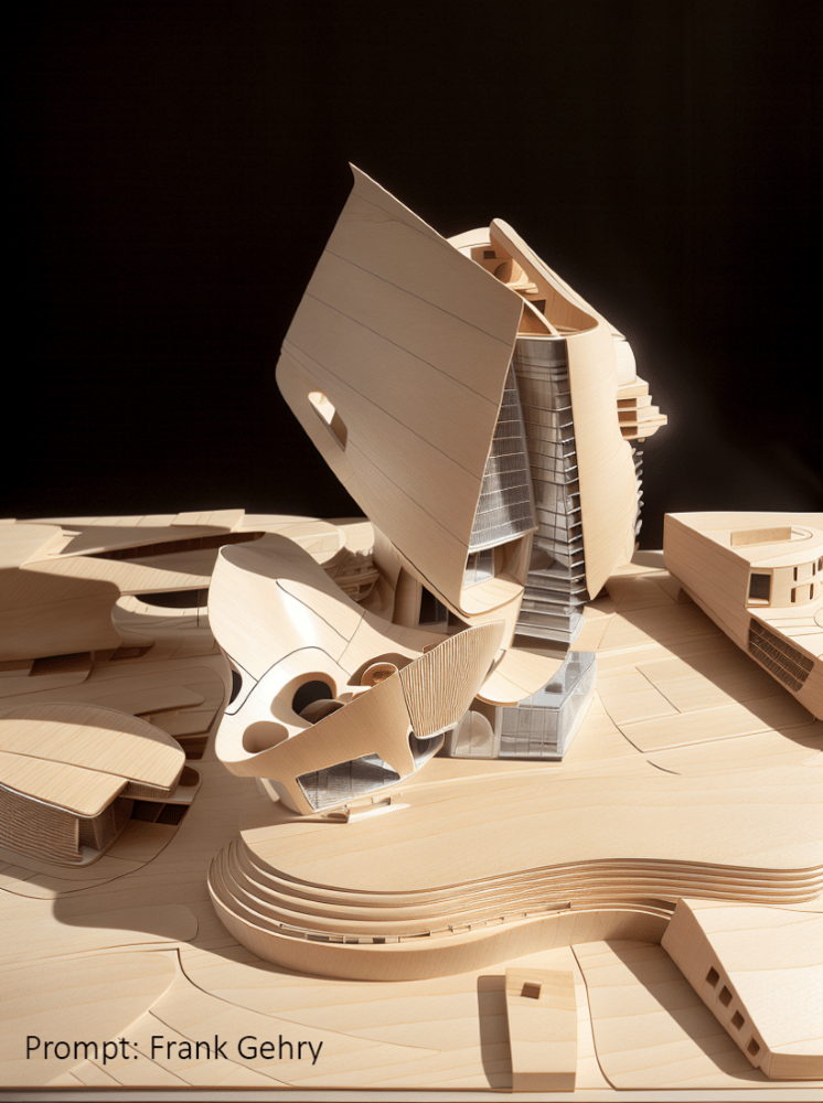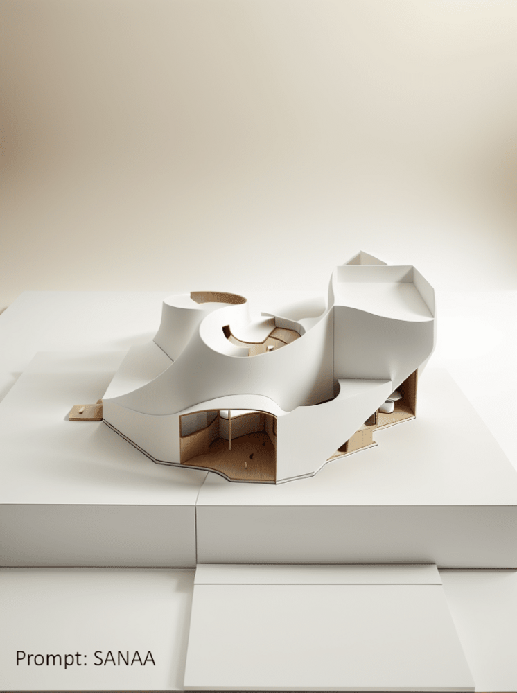 Tim Fu, bu yeni projesini gelişigüzel buruşturulmuş kağıtlarla birlikte tasarımcılar ve mimarlar için bir yapay zekâ platformu olan LookX’i kullanarak yaratmış. Fu’nun ilham kaynağı, Frank Gehry’nin The Simpsons’ta ölümsüzleştirilen meşhur yaratıcı pratiği olmuş. Mimari setler üzerine eğitilmiş bir model olan LookX’in düz beyaz buruşuk kağıt parçalarına nasıl tepki vereceğini görmeye karar vermiş. Bir görsel yükleyerek ve farklı ünlü mimarları da prompt’lara ekleyerek kullanarak inanılmaz sonuçlar elde etmeyi başarmış.