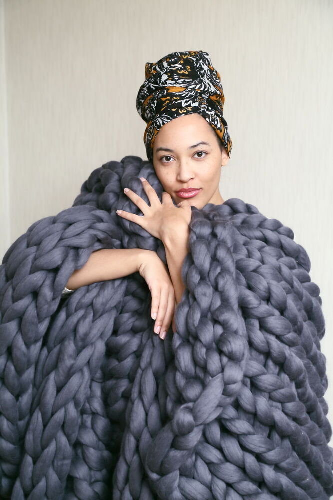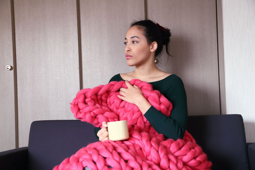 26 yaşındaki Japonyalı tasarımcı Vanessa I, kış soğuk geçen kışla mücadele etmek için (biz Türkiye’de kışı yaşamasak da) süper büyük örme battaniyeler yapmaya karar veriyor.
