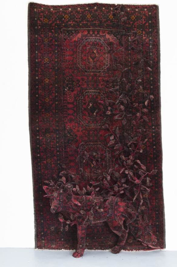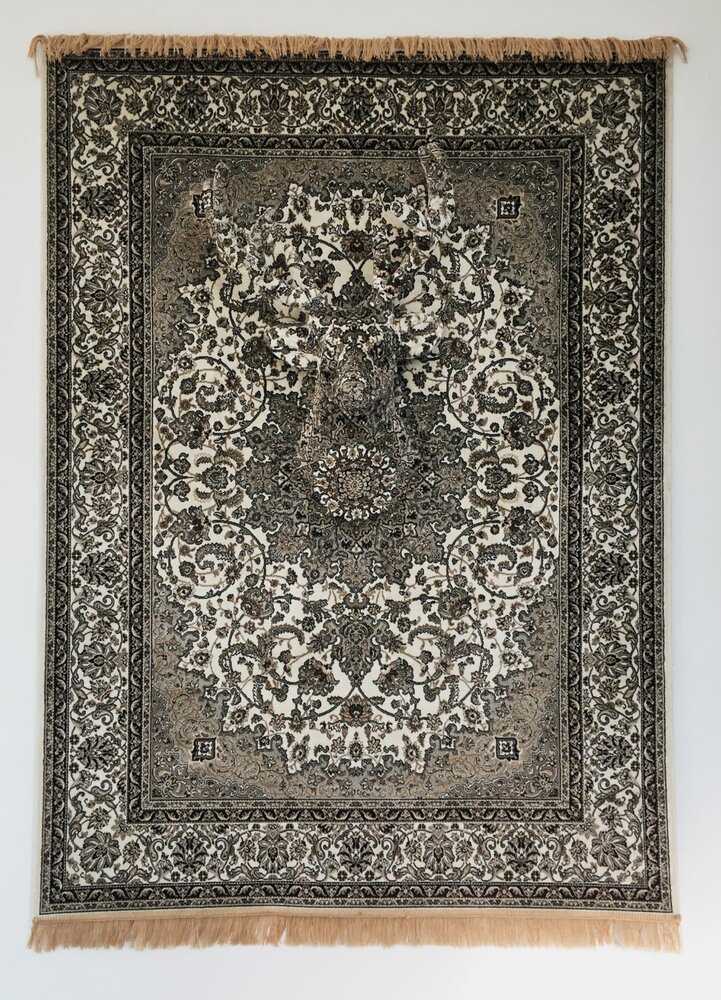 Sanatçı, tavuk tellerini ve maskeleme bantlarını kullanarak hayvanlarını sıfırdan yaratıyor. Daha sonra, hayvanların asma halı ile kaynaştığı yanılsamasını yaratmak için onları özdeş veya hemen hemen aynı Fars halılarıyla örtüyor.