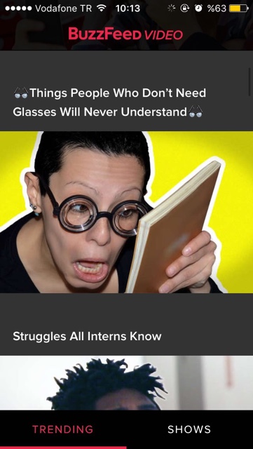 Emojiler nasıl yaratılıyor, ucuz ve pahalı şampanya tat testi, palyaçolardan korkanların palyaçolarla etkileşimi gibi pek çok farklı konudan videolar uygulamada yer alıyor. Uygulamanın iki ana bölümü ve bunun dışında hiçbir menüsü bulunmuyor. Trending ve Shows olarak ayrılan BuzzFeed Video, Trending’de çok izlenen popüler videoları, Shows’da ise seri olarak devam eden yapımları listeliyor.