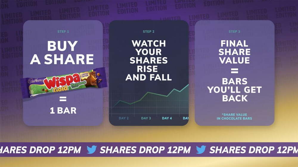 İngiltere merkezli çok uluslu şekerleme şirketi Cadbury, fındık aromalı yeni ürünü Wispa Gold Hazelnut’ı piyasaya sürerken hayranlarına da yatırım yapma fırsatı veriyor. Markayı takip eden çikolata severler, yeni ürün piyasa çıkmadan önce hisse senedi alıp sosyal medya üzerinden bu ürünün değerini takip edebilecek.