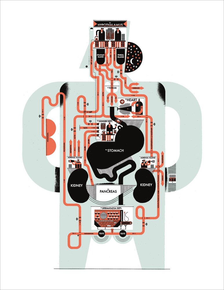 Fantastik kesitler kurgulayan yaratıcı işler gerçekten çok beklenmedik etkiler yaratabiliyor. Dün yer verdiğimiz Dorothy’nin Inside Information adlı infografik serisi bunun en güzel örneklerindendi. Edwige Massart ile Xavier Wynn’in buluntu objelerle yarattığı anatomik kesitler ve Dustin Yellin’ın 3 boyutlu foto-kolajlarla yarattığı distopik kesitler hafızalara kazınan işlerdendi. Bu defa ise canlılar ve nesneler için kurgulanmış iç sistemler yaratan Raymond Biesinger imzalı çalışmalar var karşımızda.