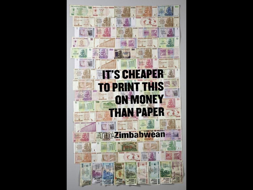 İngiltere ve Güney Afrika’da yayınlanan gazetenin satışlarını yükseltmek için yapılan kampanya, ülkenin durumu hakkında farkındalık yaratmak için afiş ve ilan panolarında bir reklam aracı olarak kullanıldı. Kampanyada değersizleşen paralar bir sanat ögesi ve eleştiri olarak bulunuyor.