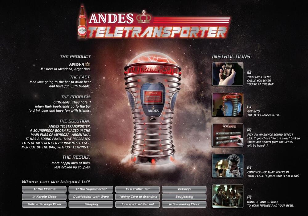 Arjantin menşeli marka Andes’in tanıtımı için yapılan kampanyanın çıkış noktası arkadaşlarınızla dışarı çıkmak istediğinizde ve sizin aramanızı bekleyen biri olduğunda rahatça konuşabileceğiniz bir kabin tasarladılar. Bu kabine girdiğinde kişiler kayıtlı seslerden birini açıp ortamın ahengini değiştirip mekanda değil de başka bir yerdeymiş gibi davranabildiler.