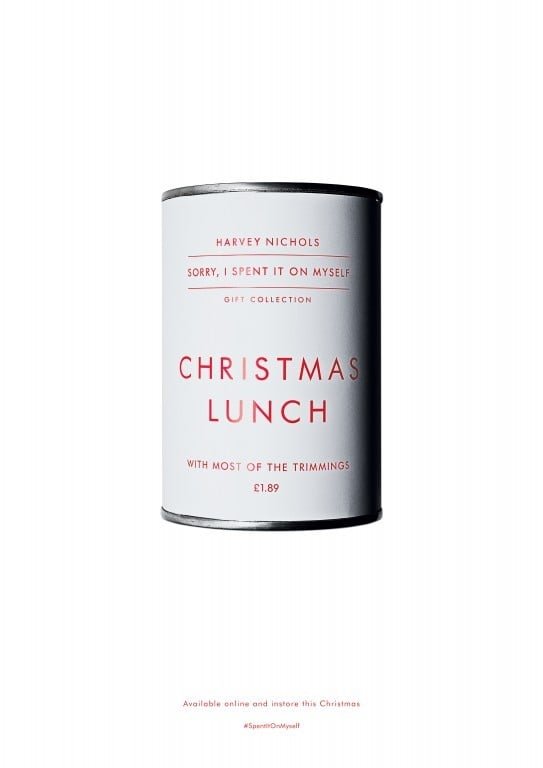 2014’teki kampanyasıyla adam&eveDDB London ve Harvey Nichols, Cannes Lions’a damga vurmuştu. Sadece filmiyle değil ilanlarıyla da 2014’te Grand Prix kazandı. Konsepti ise ters köşeydi diyebiliriz biraz. “Hediyeleri başkasına değil kendinize alın” koleksiyonunda tüm paranızı harcadıktan sonra sevdiklerinize Harvey Nichols’ta hala hediye var diyordu marka.