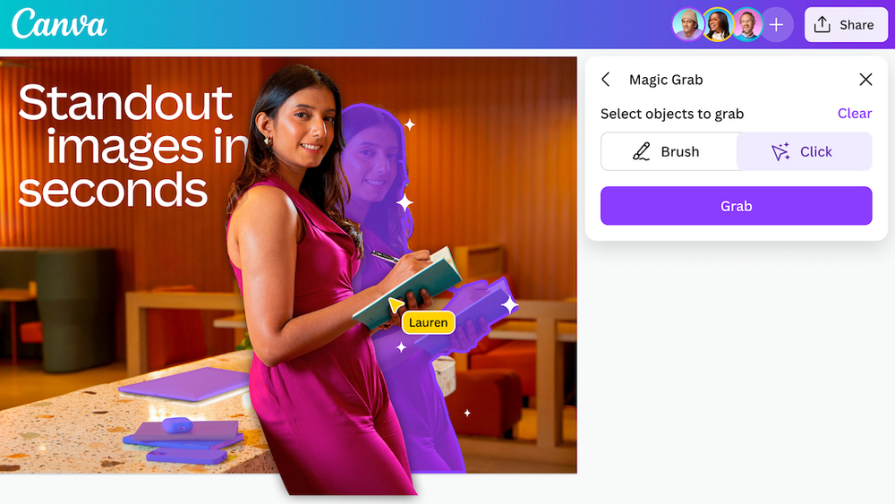 Sihirli Stüdyo’daki yapay zeka destekli özelliklerde de yenilikler var. Kullanıcıların metin istemlerinden grafikler oluşturmasına, tek tıklamayla marka şablonlarını uygulamasına ve fotoğrafları yapay zeka hassasiyetiyle düzenlemesine olanak tanıyor.