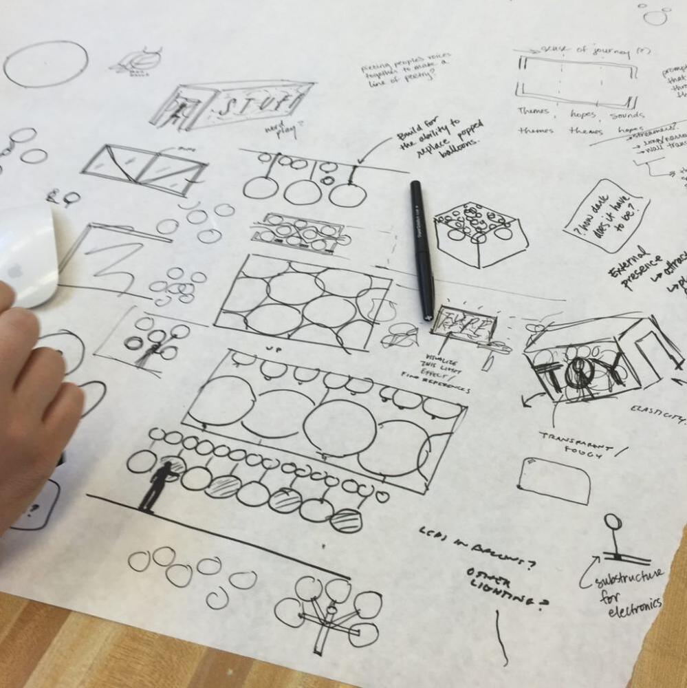 Yaratıcılıkla müziği buluşturmak isteyen ekip 6 büyük plaj topunu kullanarak katılımcıların hareketlerine göre değişen kolektif müzik üretme fikri ortaya çıkmış. Projenin prototip aşaması tamamlandıktan sonra gereken alanın 2,5 metre uzunluğunda 5 metre genişliğinde olması planlanmış. Ancak karşılarına bir basketbol sahası çıkmış ve bu alanı kullanmaya karar vermişler.
