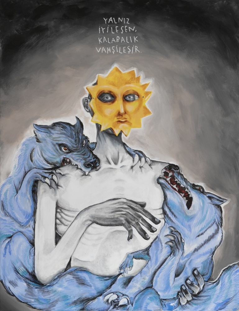 Renklerle ve fırça izleriyle; karikatürdeki kontur çizgilerinin, taramaların ve konuşma balonlarının anlatamayacağı şeyleri anlatabiliyorsun. “Ay, Güneş ve Ay”da sergilenecek tuvallerinde bu resimsellik daha da yoğun hissediliyor. Kendine uzaktan baktığında, bu dönüşümün nereye doğru evrildiğini hissediyorsun? Uzun vadede nereye doğru evrilmesini istersin?