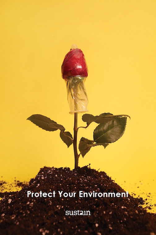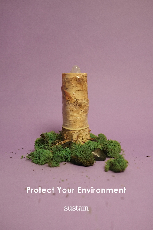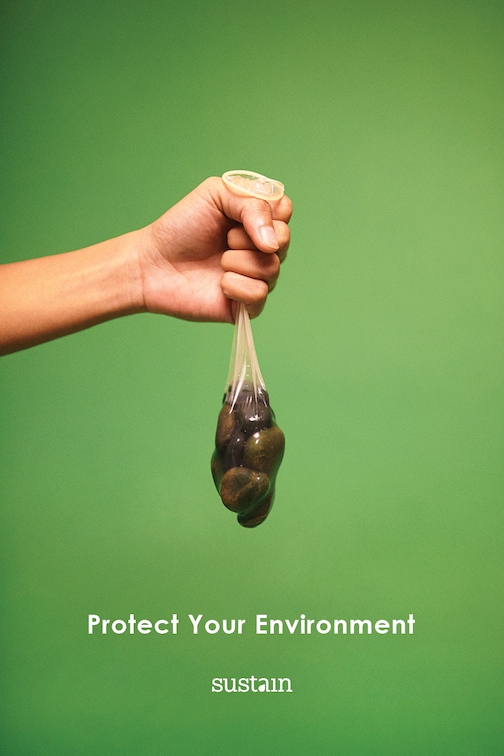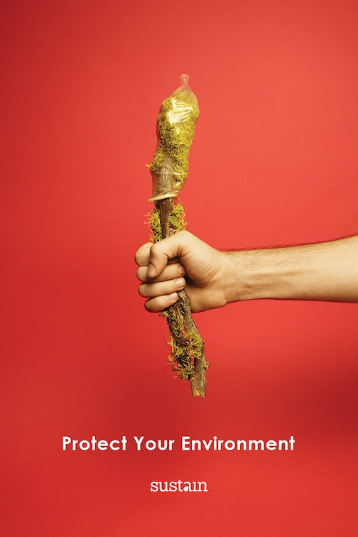 Amerikalı prezervatif markası Sustain, çevre sorunlarına kendi yöntemleriyle dikkat çekmek istiyor. Cinsel sağlığın korunması için hizmet veren şirket çevrenin ve doğanın da korunması gerektiğini ancak ona yeterli önemi vermediğimizi gösteriyor.