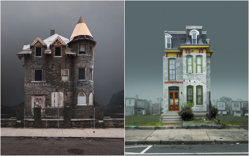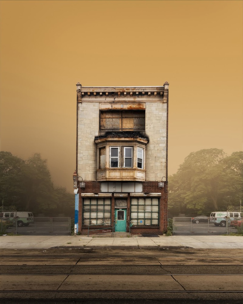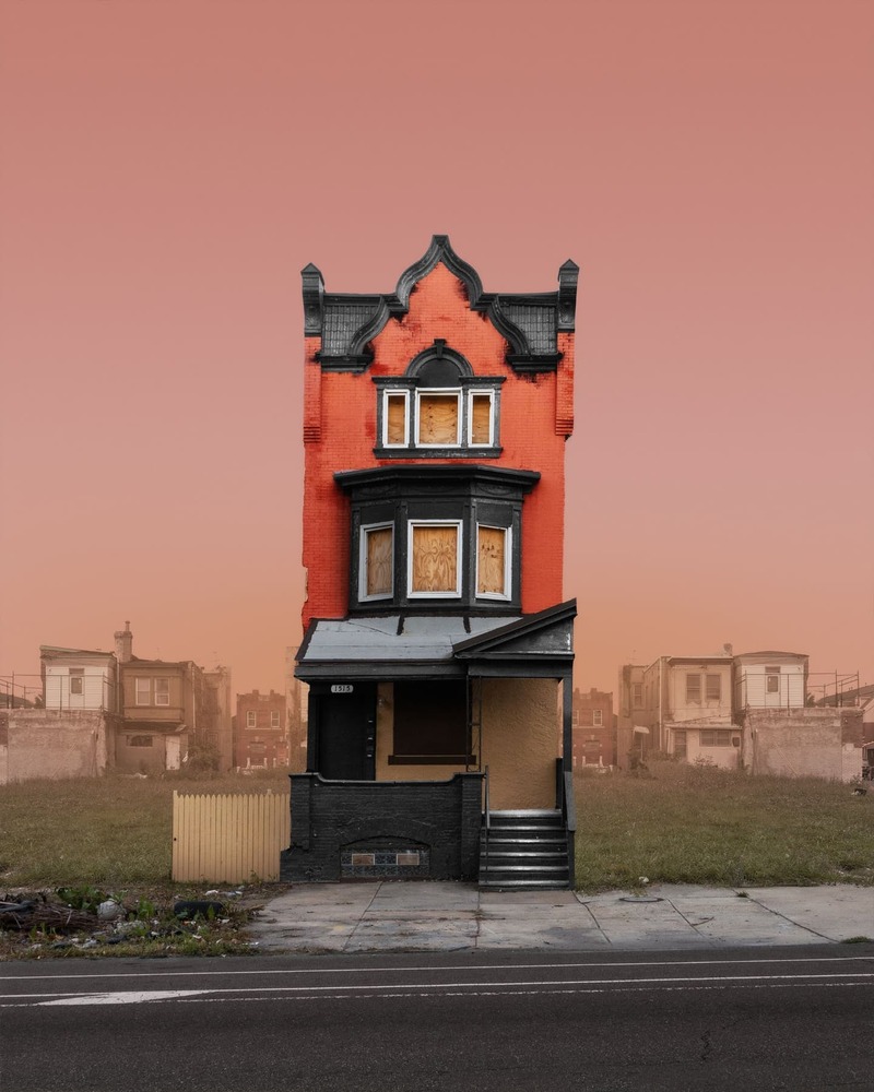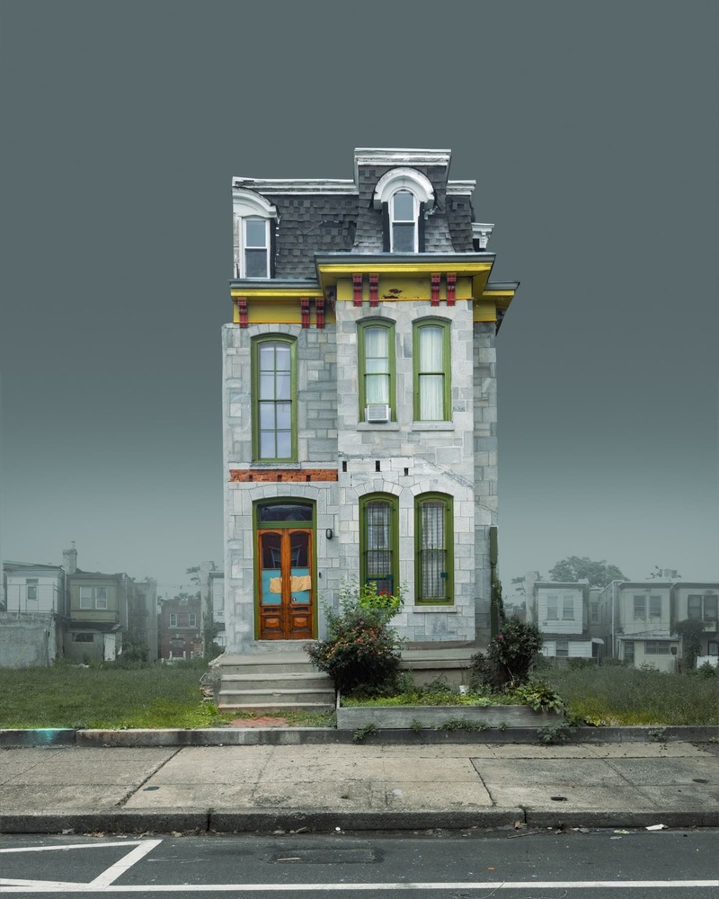 Sanatçı, kentin periferi alanlarında (merkezden uzak mahaller) kalan terk edilmiş evleri fotoğraladığı Rowhomes serisinde her bir evin kendine has karakterini vurgulamayı amaçlıyor. Bu tasviri güçlendirmek için Adobe Photoshop ve Lightroom uygulamalarını kullanarak evleri bulundukları ortamdan soyutluyor ve daha belirgin hale getiriyor. İki ya da üç katlı evlerin etrafındaki elektrik hatlarını, direkleri, araçları ve diğer dikkat dağıtıcı unsurları minimum seviyeye indirerek evlerin kendi karakterlerini yansıtması için onlara alan açıyor. Mahallelerin bugünü ve geçmişi hakkında bir ipucu barındıran her bir ev karakteristik özelliklerini bu sayede ön plana çıkarabiliyor.