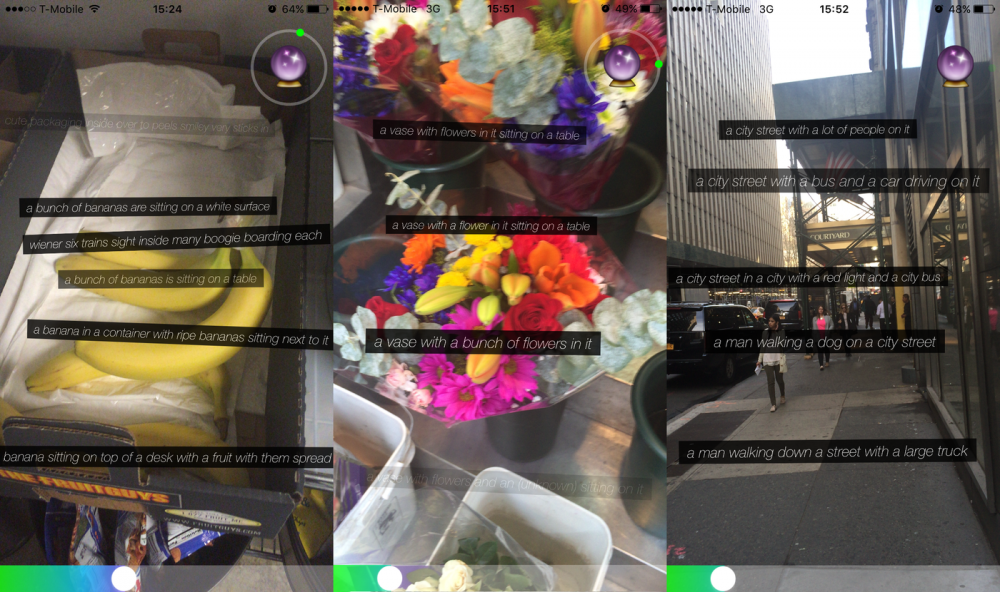 disk cactus tarafından geliştirilen AI • Scry isimli mobil uygulama, yapay sinir ağlarının görsel tanımlama algoritmalarından faydalanarak gördüklerini sözel olarak anlatıyor. Yapay sinir ağlarının katmanlı tanımlama sistemi sayesinde çeşitli derecelerde betimlemeler yapabiliyor.