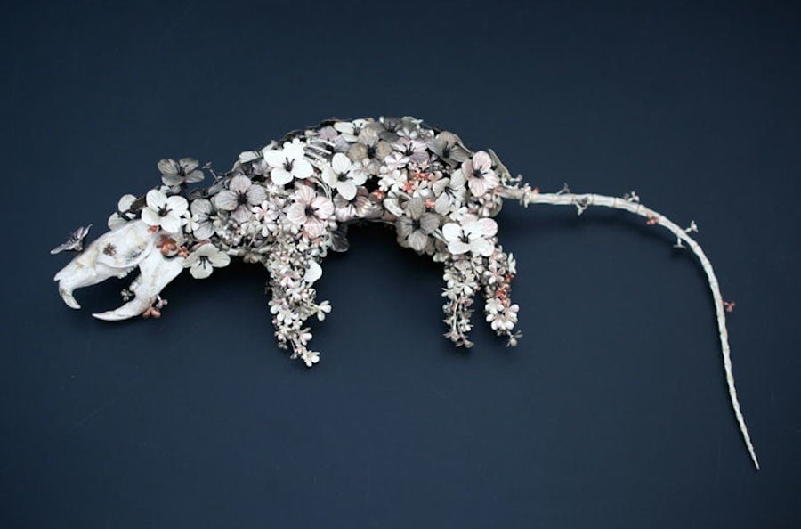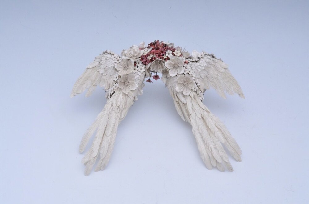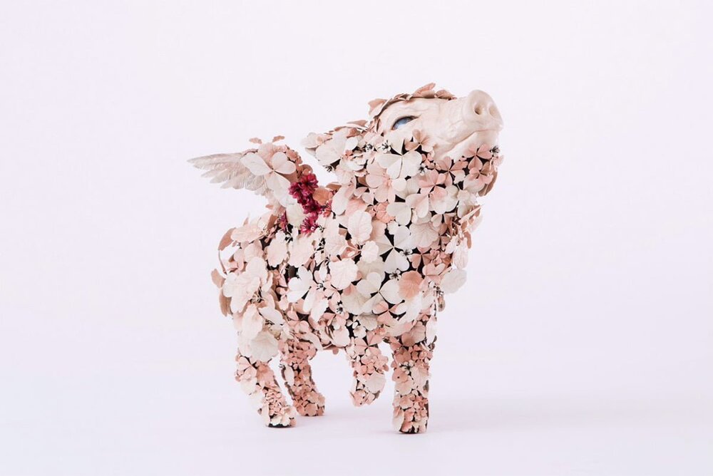 Yapraklardan, çiçeklerden, bambudan ve nakışla yapılmış zarif böcek heykellerinin ardından Taiichiro Yoshida’nın çiçekten yapılmış hayvan heykelleri de etkileyici bir seri olarak karşımıza çıkıyor.