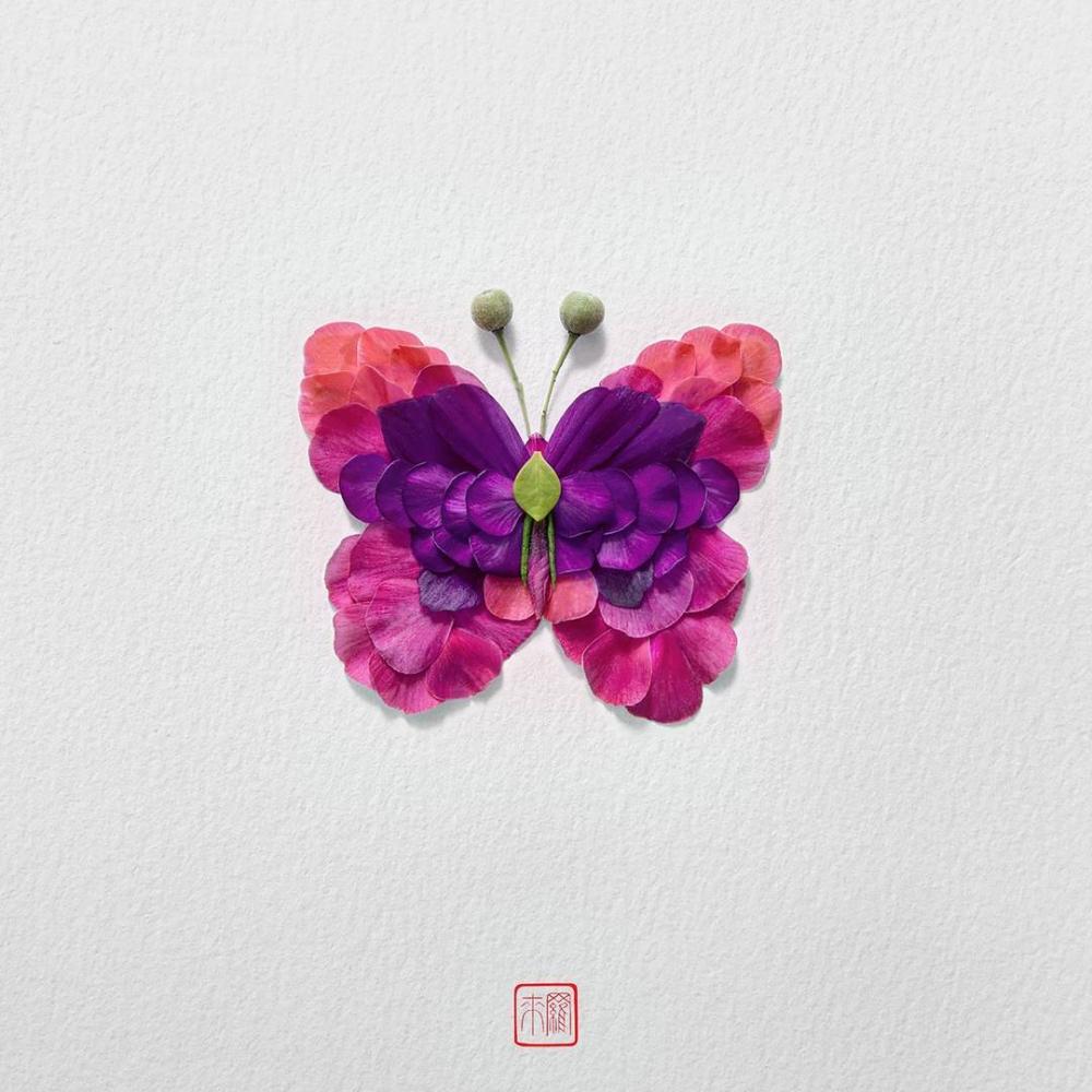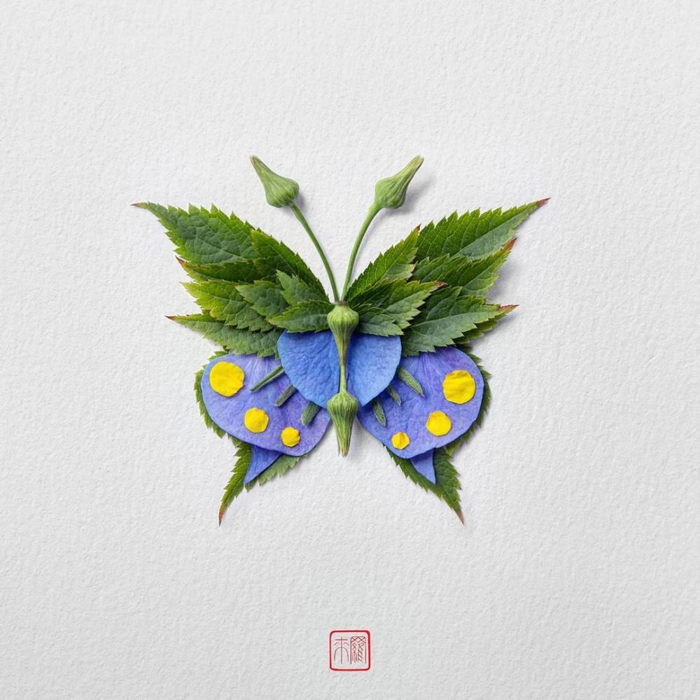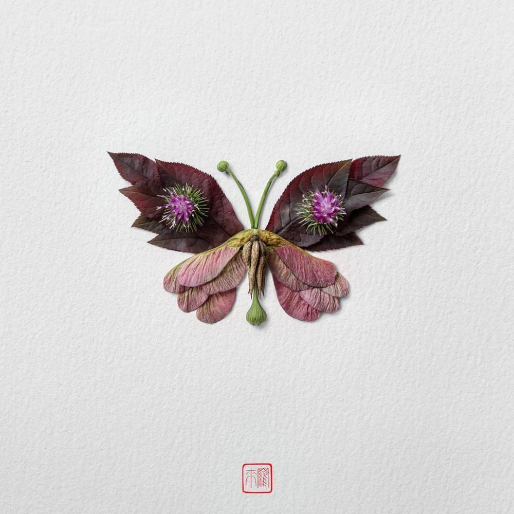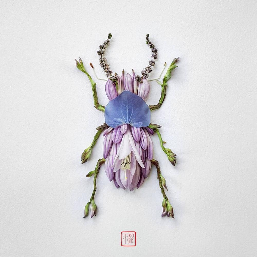 Kanada’nın ikinci büyük şehri Montreal’de sahip olduğu giyim markası Reikan Appeal için çalışmalarını sürdüren Raku Inoue, yaratıcılığını beslemek için Instagram’da sürekli olarak farklı kompozisyonlar ve kolajlar üretiyor. Toplamda iki bölüm ve 18 kolajdan oluşan Natura Insects çalışması gündelik hayatta kimilerini şirin kimilerini iğrenç diyerek yaftaladığımız böcekler ve eklembacaklıyı yaprak ve çiçek kullanarak modelliyor.