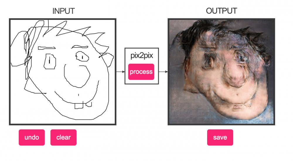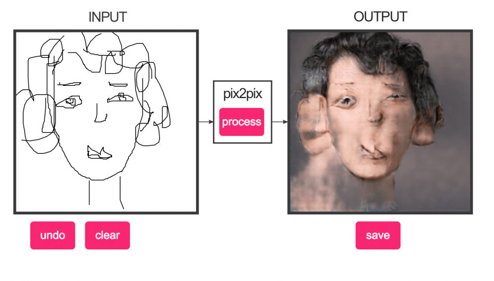 Geçtiğimiz aylardan hatırlarsınız bir kutuya bir kedi çiziyorduk, yandaki kutudan o kedinin fotoğrafımsı bir versiyonunu elde ediyorduk. Edges2Cats isimli projenin algoritması çizim kediye dokular ve renkler ekliyor, ortaya korkunca yakın kedicikler çıkarıyordu. Şimdi benzer bir proje kedi yerine, insan çizimleri için devrede. Kedi milletinin sevimliliği de gidince, ortaya baya kabusvari görseller çıkıyor tabii.