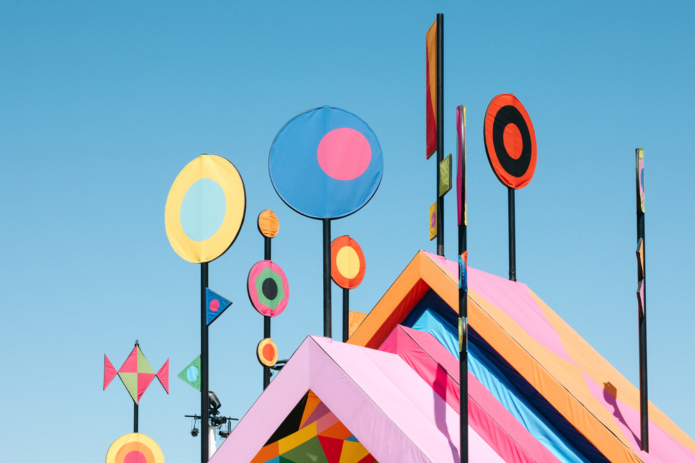 Her yıl Kaliforniya’nın Indio şehrinde düzenlenen bir müzik ve sanat festivali olan Coachella Valley Music and Arts Festival bu yıl 12-14 ve 19-21 Nisan tarihleri arasında meraklılarıyla buluşmakta. Festivalde en çok ses getiren eserlerden biri ise İngiliz sanatçı Morag Myerscough’un Dancing in the Sky (Gökyüzünde Dans) isimli rengarenk yerleştirmesi oldu.