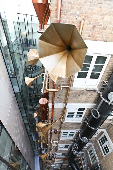 Studio Weave, Londra’da tarihi bir çocuk hastanenin arka bahçesinde çocuklar için gizli bir ninni fabrikası inşa etti ve o çevre zaman içinde yıkılana kadar da kalacak. Studio Weave mimarları, enstalasyonu yaratırken tuğladan duvarların yüzeyini kapatan karmakarışık borulardan ve kanalizasyon sisteminden ilham almış ve onları gizlemek yerine üstlerine geniş-yaygın borular ve klaksonlarla çevrelemek istemişler. Metalin birçok çeşidi kullanılmış gümüş, altın ve bronz borular yaratılırken; ek olarak hastanenin kazan dairesinden malzemelerden de geridönüşümle elde edilen parçalar da var.