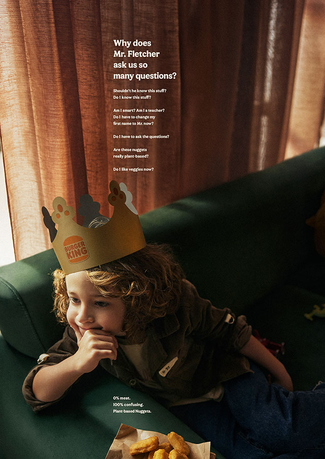 Çok fazla soru soran öğretmen, tüm bu soruların cevabını biliyor olabilir mi? Bir çocuğun doğum günü partisinde bu kadar yetişkinin ne işi olabilir? Ödüllü Confusing Times kampanyasını geçtiğimiz yıl yayınlanan Impossible Nuggets ürününün tanıtıldığı Even More Confusing Times devam ettiren Burger King, bitki bazlı ürün kategorisinin son reklam filminde hayat ve çevrelerindeki dünya ile ilgili masum sorular soran çocukların bu soruların cevaplarına ilişkin yaşadıkları kafa karışıklıklarına dikkat çekiyor.
