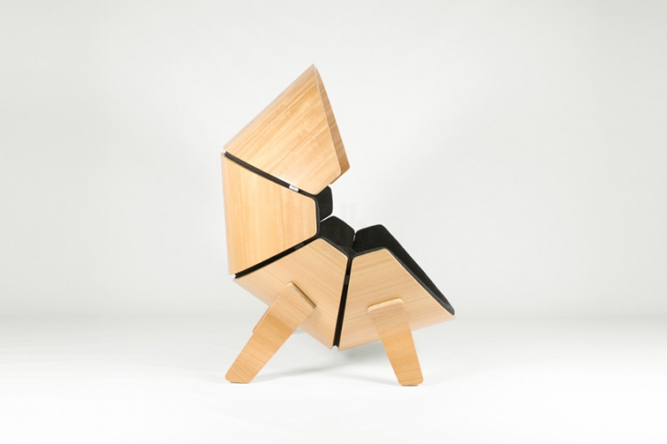 Hideaway Chair, çocuklar için ufak bir kaçış alanı yaratan dört parça kontrplaktan yapılmış. Kıvrımlı kenarları, yumuşak hatları, koza gibi içi, konforlu iç döşemesiyle içinde oturan çocuğa içinde sakin, rahat ve kendisine ait, yarı mahrem bir alan sunuyor.