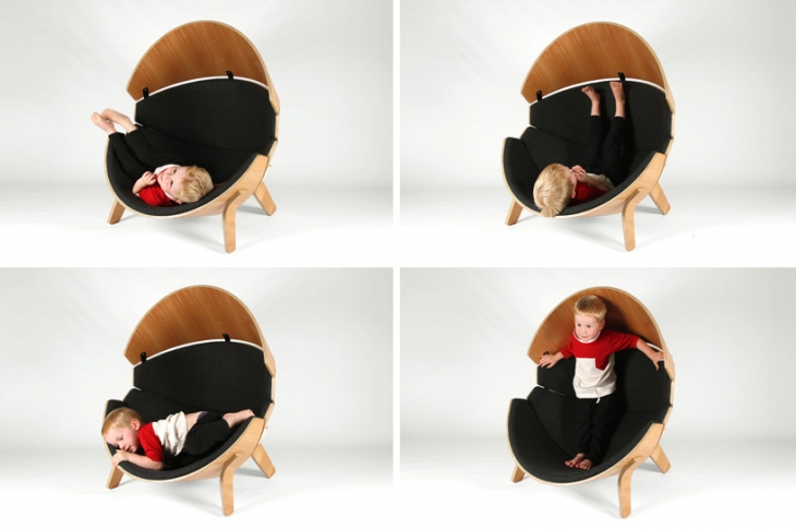 Yeni Zelandalı çocuk bakım evi New Shoots, tasarım ofisi Think&Shift‘ten çocuklar için özel bir ürün tasarlamasını istemiş. Think&Shift, çocukların çevrelerindeki kalabalıktan, gürültüden, olan bitenden kaçıp, kendilerine küçük, özel bir alan yaratabilecekleri bir koltuk tasarlamış: Hideaway Chair.