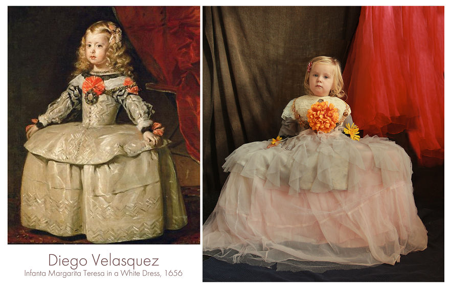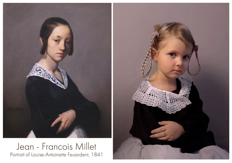 Bu seri için ilk çektiği fotoğraf yeni doğan kızına ait ve kızını Eduard Manet’nin eserindeki bir kız gibi gösteriyor. Beş yıl içinde bu fotoğraf serisi oldukça büyüyor ve ortaya 280’den fazla ünlü eserin taklidi oluşuyor. Genellikle çocuklar için eser-fotoğraf dönüşümü yaparken bazen de büyük insanları fotoğraflarında kullanıyor.