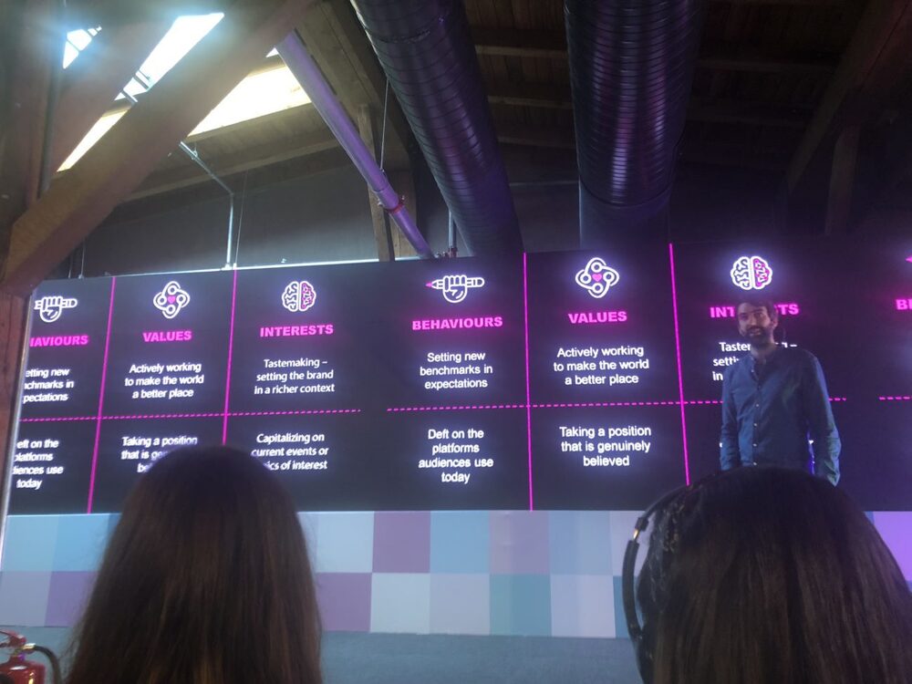 Alex Jenkins’in sahneden inmesiyle de yerini editör Patrick Jeffrey aldı. Patrick sahnede teknolojinin kültürleri nasıl demokratik bir biçimde bir denkleme oturttuğundan bahsederek konuya girdi. Kültürün markalarla ilintisini ve marka vaadiyle birlikte nasıl işler bir yapıya dönüştüğünü anlattı. Bu konuyu bir tabloyla açıklayan Patrick; davranış, değer ve ilgi alanları üçlüsünde hızlı bir şekilde açıklamaya koyuldu. Bir marka için sahiplendiği kültür bir boşluğu dolduruyorsa o markanın kolayca kültürel lider olabileceğini anlattı. Bu yüzden de markanın söyleminin bir kültürü sahiplenmeye açık olması gerekiyor tabii.