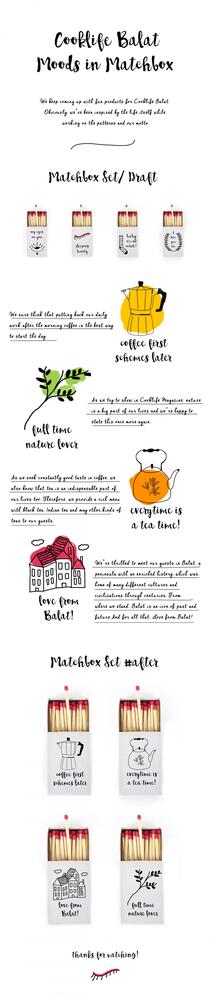 Kahvenin ve çayın samimiyeti, Balat sokakları, doğanın dokunuşu eşliğinde tasarlanan kibrit kutuları bir bütün olarak baktığımızda hikayesini ve hislerini aktaracak güce sahip. Cooklife Magazine ve Cooklife Balat hakkında detaylı bilgiye Facebook sayfalarından alabilirsiniz.
