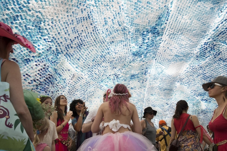 New York Governor’s Island’da kocaman bir bulut heykeli var: Head In The Clouds. Ancak bu bulut heykelinin özelliği çöplerle yapılmış olması. 53.780 adet süt ve su şişesinin kullanıldığı bu sıra dışı heykelin tasarımcısı Jason Klimoski. Bu rakam ise New York’ta bir saat içinde tüketilen pet sayısına denk.