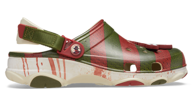 Freddy Krueger hayranları, rüya iblisinin imzası olan kırmızı ve yeşil çizgili deseni taşıyan, kan sıçraması gibi görünen unsurlarla vurgulanan modelle tatlı bir kabusa sürüklenebilir. Freddy’nin jilet keskinliğinde pençeleri ve kendine özgü fötr şapkasını içeren Jibbitz süsleri, bu modeli tamamlıyor.