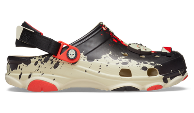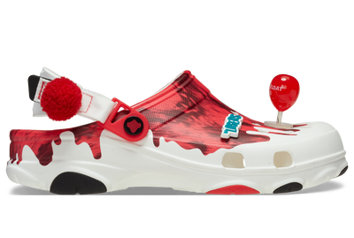 Jason Voorhees modeli, Camp Crystal Lake’in en meşhur sakininin özünü yansıtıyor. Bu terlikler, ayak parmaklarınızı göle daldırmadan önce iki kez düşünmenizi sağlayacak sıçrama efektleriyle birlikte yıpranmış bir görünüme sahip. Jibbitz adı verilen terlik süsleri; Jason’ın ikonik hokey maskesinin minyatür versiyonlarını, bıçaklarını ve kurgusal kamp ortamına dair detayları da terliğe eklemeyi sağlıyor.