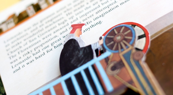 1984 yılında Alice ve Martin Provensen tarafından hazırlanan pop up kitapta belki Da Vinci canlanıp önünüzde tablolarını baştan yapmıyor ama, eserlerine, hayatına dair birçok bilgi ve hikaye itinayla çizilmiş illüstrasyonlar üzerinde üç boyutlu olarak anlatılıyor.