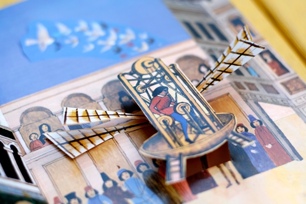 Kitabın eğiticiliği, illüstrasyonların önümüze serdiği sanat boyutunun yanı sıra, içinde tüm mühendislerin fahri babası Da Vinci’ye yakışan bir mühendislik de barındırıyor. İki boyutlu kağıtlar, sayfalar çevrildikçe öyle ince bir hesapla ve kesinlikle üç boyutlu sahneleri canlandırıyorlar ki, insanın ağzı açık kalıyor.
