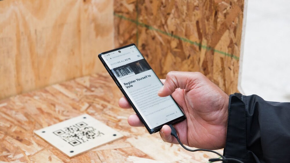 Bu QR kodda seçim ile ilgili tarihler, seçmen hakları ve posta yoluyla oy pusulalarının nasıl gönderileceği hakkında bilgiler yer alıyor. Black Lives Matter protestoları sırasında kullanılan tahtaların dönüştürülmesiyle hazırlanan panolar bu sayede aynı zamanda bir geri dönüşüm hareketi olma özelliği taşıyor.