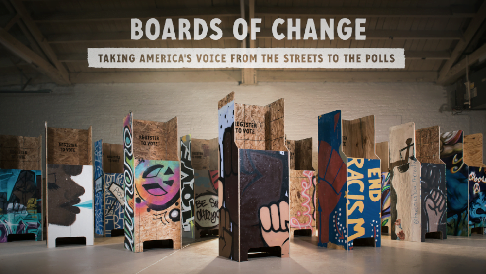 ABD’deki seçimlerde vatandaşları oy vermeye teşvik etmek için FCB Chicago tarafından yaratılan Boards of Change, Chicago’nun seçimlerde düşük katılım gösteren bölgelerinde mahalle sakinlerini oy vermeye teşvik etmek amacıyla hazırlanıyor. Kentin yürütücüleriyle ortak gerçekleşririlen kampanyada kullanıcıların QR kod okutarak değişimde sorumluluk üstlenmesi isteniliyor.