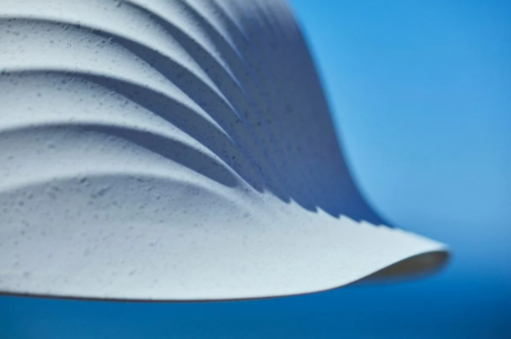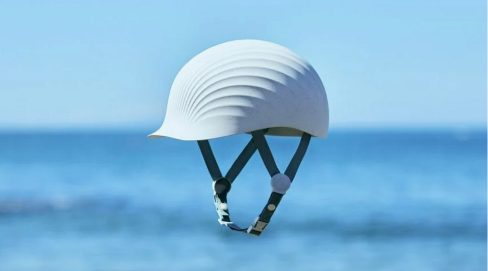 Plastik bir çene kayışı ile bağlanan baret, tıpkı istiridye kabukları gibi çıkıntılara sahip büyük boy bir deniz kabuğu şeklinde. Deniz ürünleri endüstrisinden deniz tarağı kabuklarını geri dönüştürülmüş plastikle birleştiren Koushi şirketinin geliştirdiği özgün bir malzeme olan Shellstic’ten üretildi.